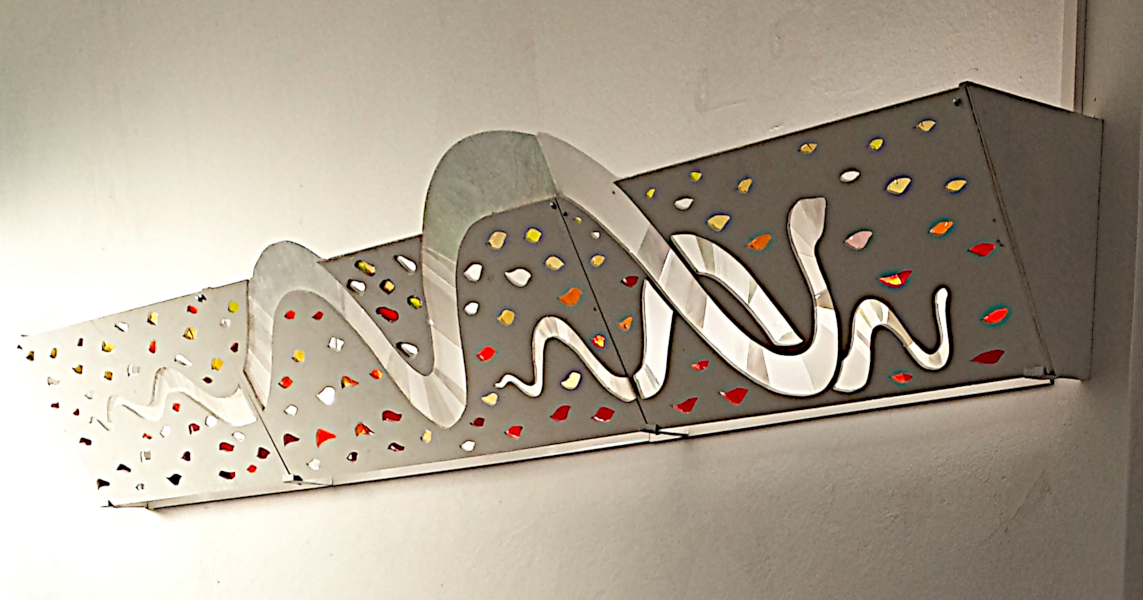 Farbglas in Holz eingelegt